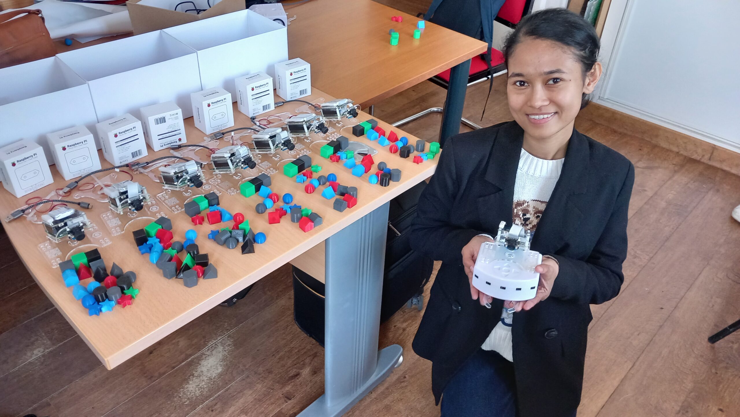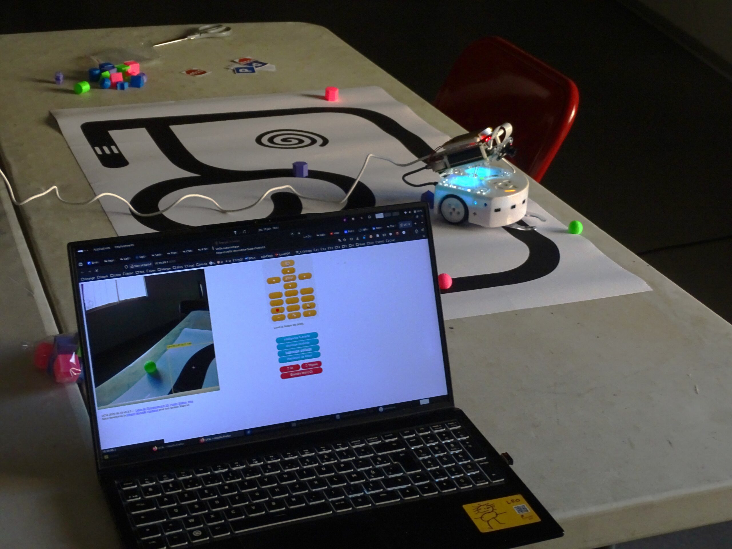 Notre machine LUCIA se positionne au dessus d’un robot Thymio.